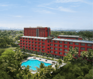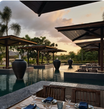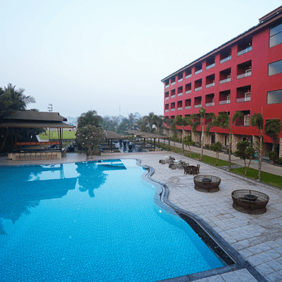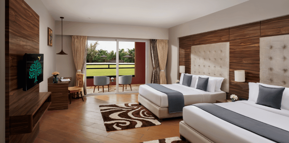 Perched on the resort’s higher floors, Luxury Rooms boast lush lawn views, elegant interiors, premium amenities, and a bathtub. A work desk ensures productivity, making it an ideal retreat near Mumbai.